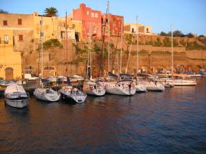 Wir ankern im alten römischen Galeerenhafen von Ventotene. Dahinter gibt es einen neuen Hafen, in dem auch Fährschiffe anlegen.