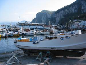 Neben vielen Luxusyachten finden auch wir mit unserer Bavaria einen Liegeplatz im Hafen von Capri. (44 sm)